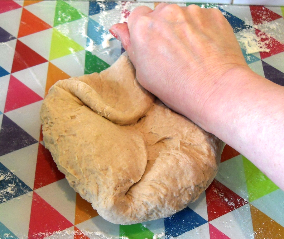 - Use your hands to bring the dough together and transfer to a floured surface, knead for a few minutes until smooth and elastic.