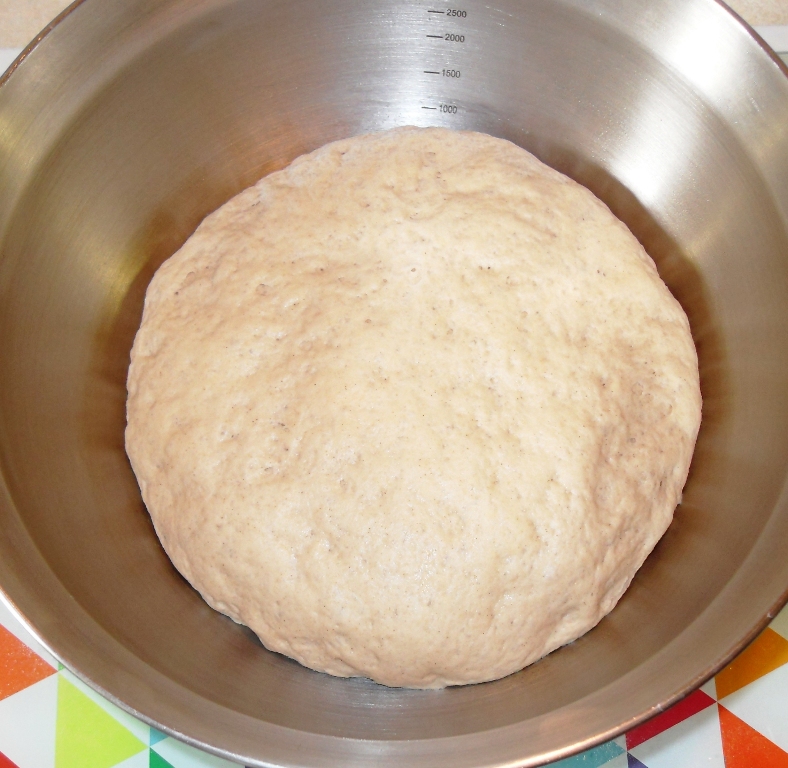 - Put the dough in a well oiled bowl covered with cling film, and set aside in a warm place (airing cupboards are good) to prove for about 1 ½ hours until doubled in size.